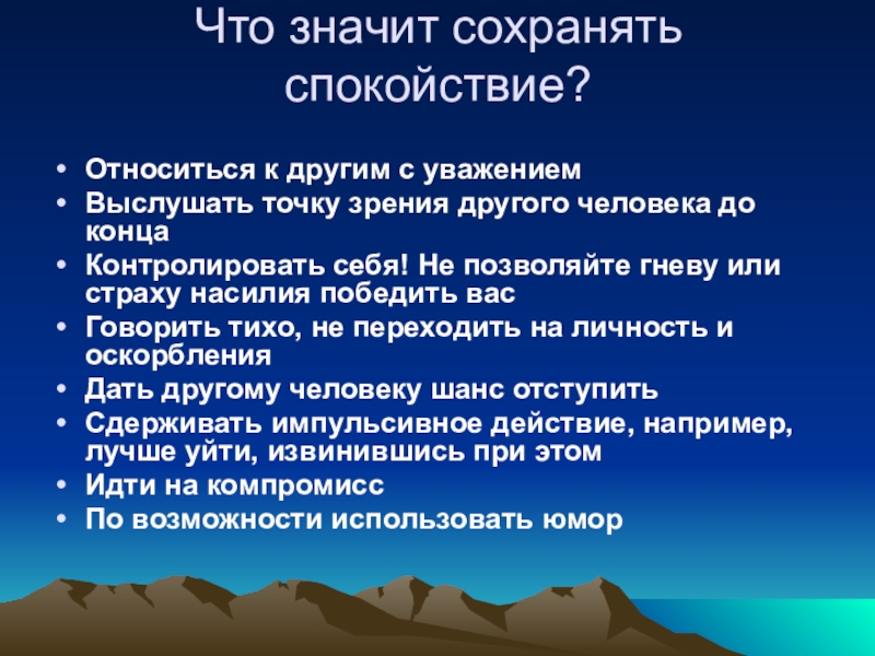Контролировать себя! Не позволяйте гневу или страху насилия победить вас