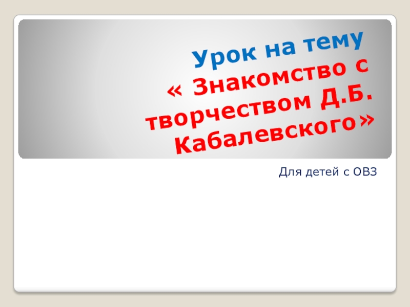 Урок на тему  « Знакомство с творчеством Д.Б.Кабалевского» Для детей с ОВЗ