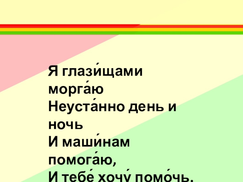 Я глази́щами морга́юНеуста́нно день и ночьИ маши́нам помога́ю,И тебе́ хочу́ помо́чь.