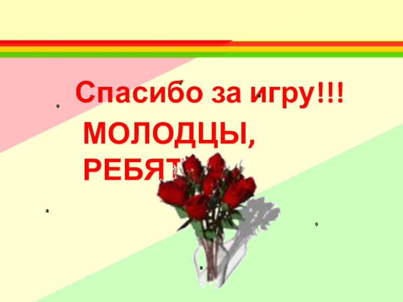 Спасибо за игру!!!МОЛОДЦЫ,РЕБЯТА!