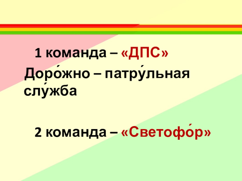 1 команда – «ДПС»  Доро́жно – патру́льная слу́жба   2 команда –
