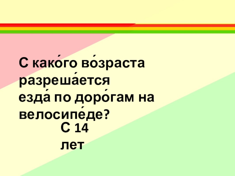 С како́го во́зраста разреша́ется езда́ по доро́гам на велосипе́де?С 14 лет