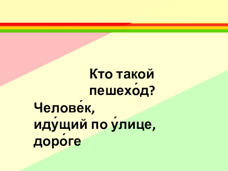 Кто такой пешехо́д?Челове́к, иду́щий по у́лице, доро́ге
