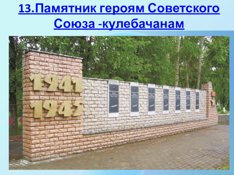 Слайд 1413.Памятник героям Советского Союза -кулебачанам