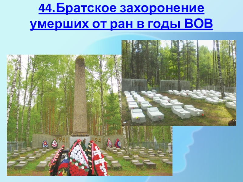 Слайд 4544.Братское захоронение умерших от ран в годы ВОВ