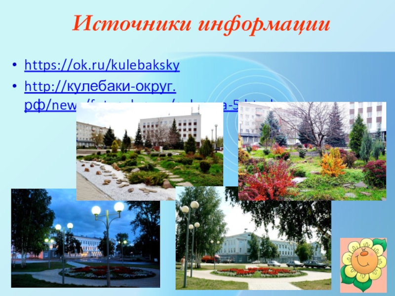 Источники информацииhttps://ok.ru/kulebakskyhttp://кулебаки-округ.рф/news/fotogalereya/galereya-5.html