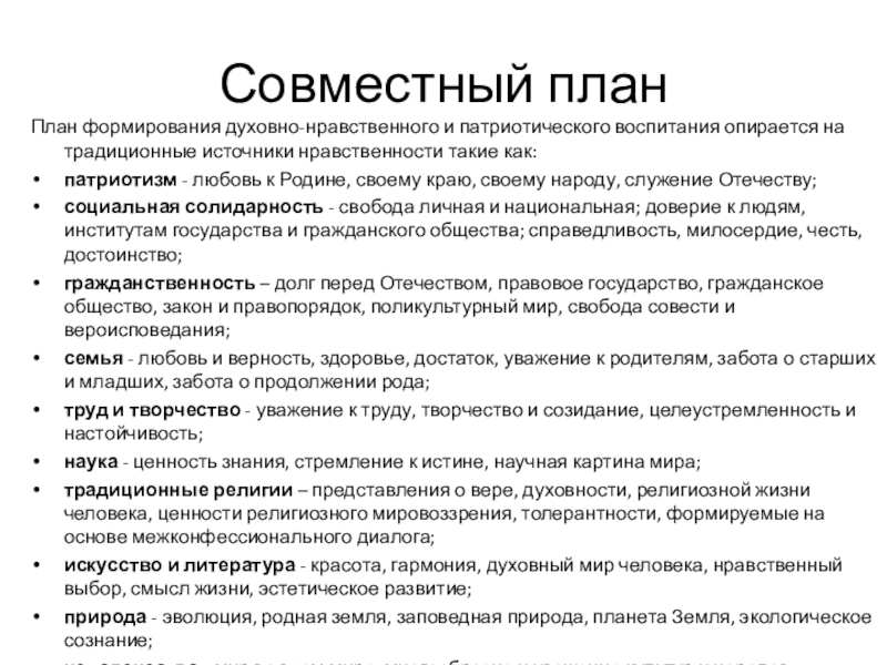 План формирования духовно-нравственного и патриотического воспитания опирается на традиционные источники