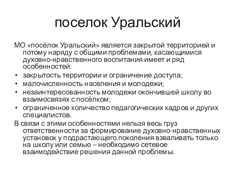 МО «посёлок Уральский» является закрытой территорией и потому наряду с