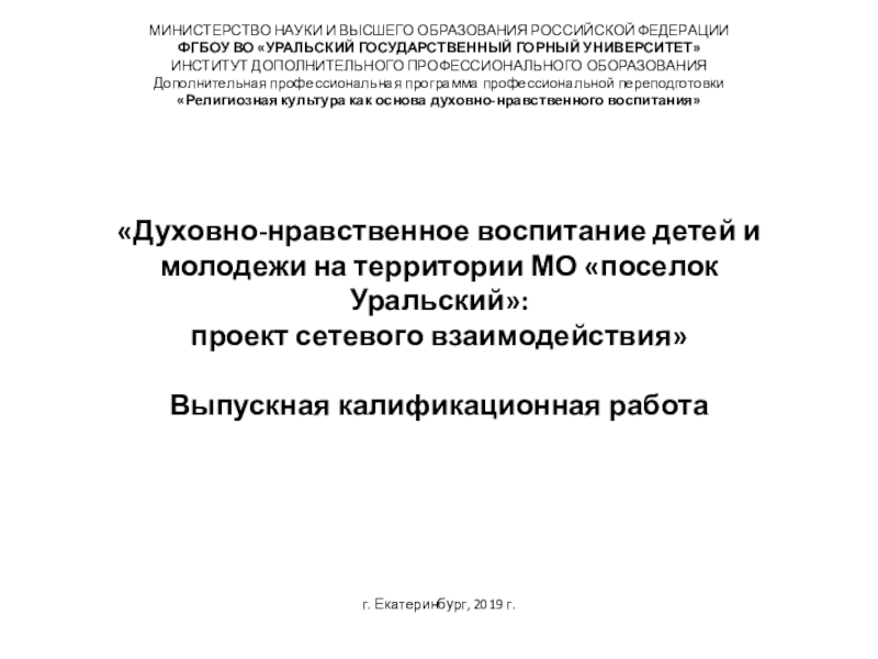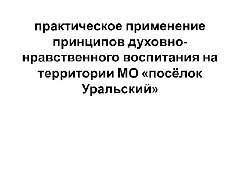 «Духовно-нравственное воспитание детей и молодежи на территории МО «поселок Уральский»: