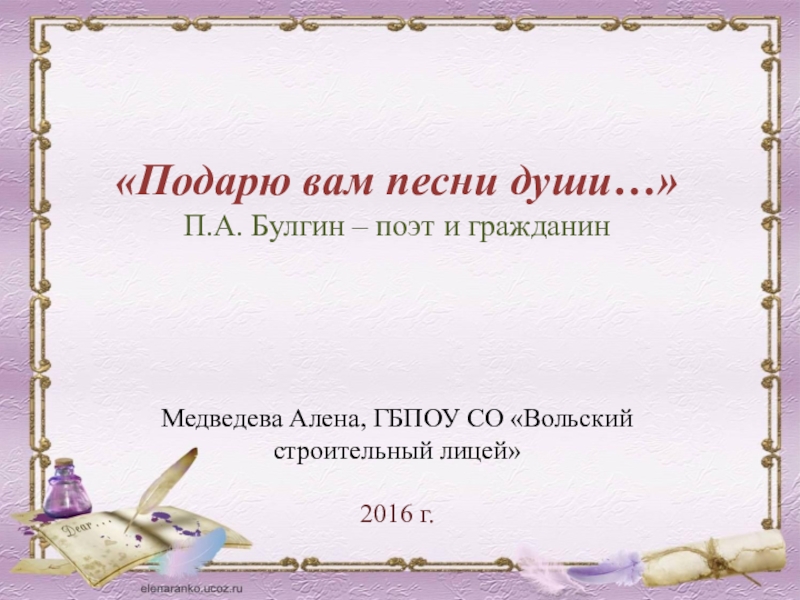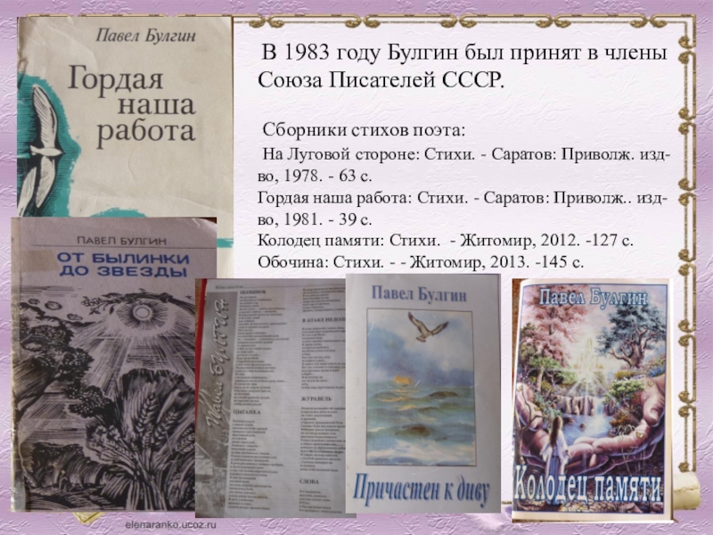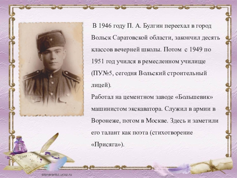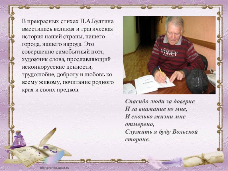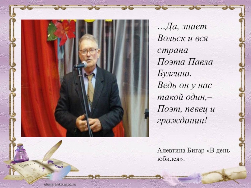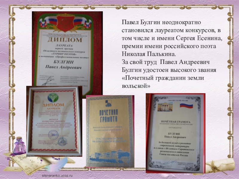 Павел Андреевич Булгин, член Союза писателей России, Почетный гражданин земли Вольской.