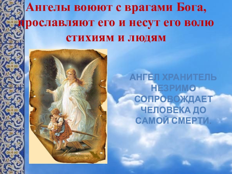 Ангел хранитель незримо сопровождает человека до самой смерти.