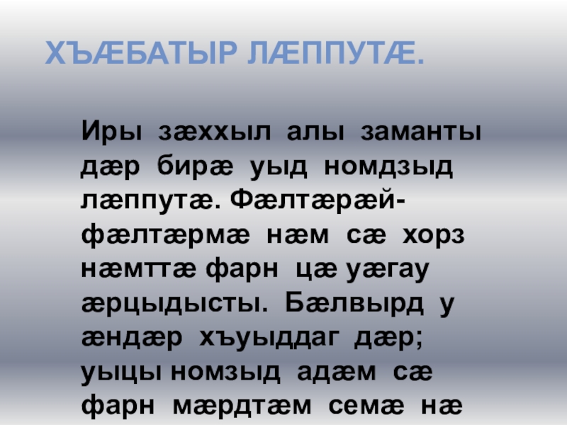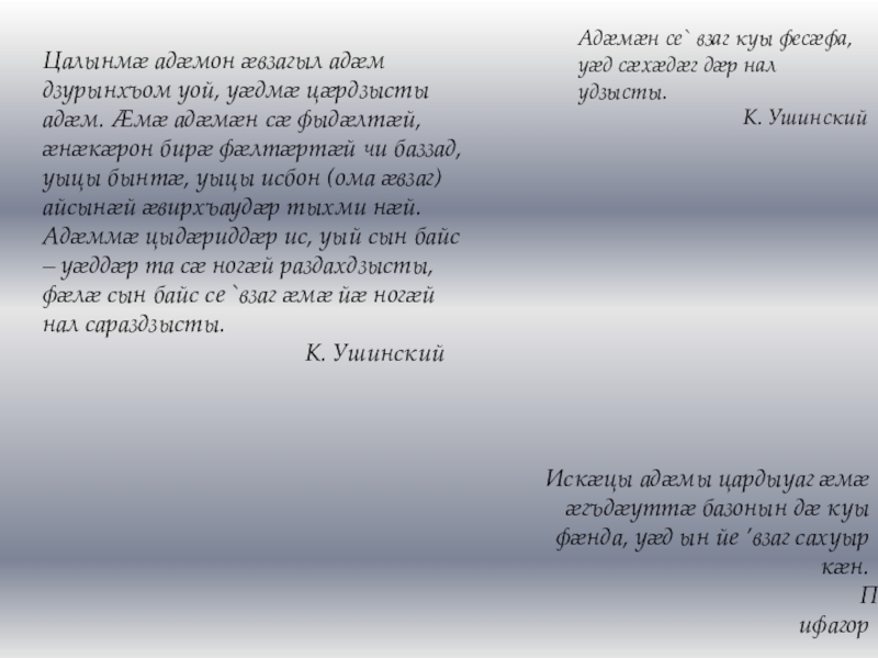 Искæцы адæмы цардыуаг æмæ æгъдæуттæ базонын дæ куы фæнда, уæд ын йе ’взаг сахуыр кæн.