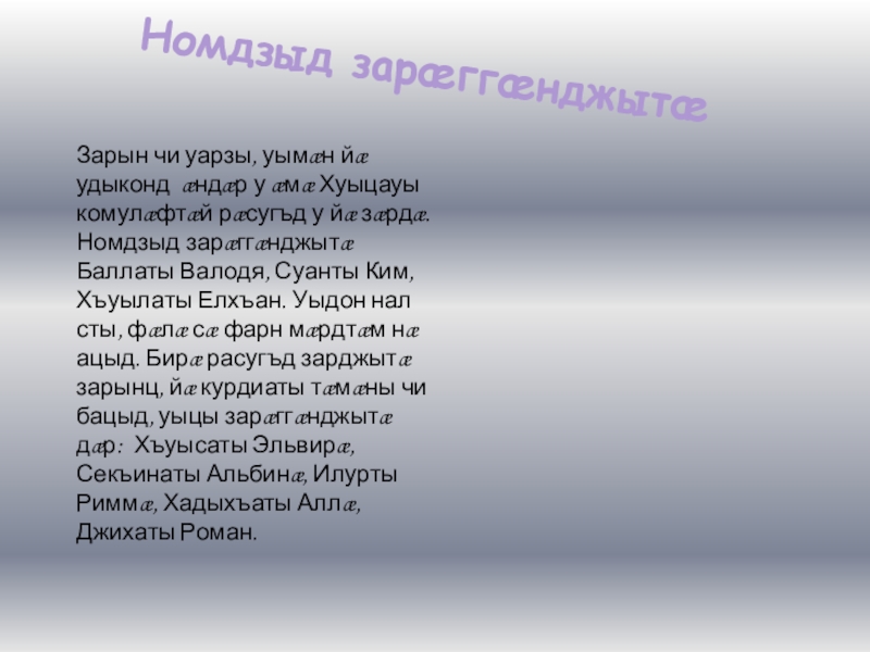 Номдзыд зарæггæнджытæ