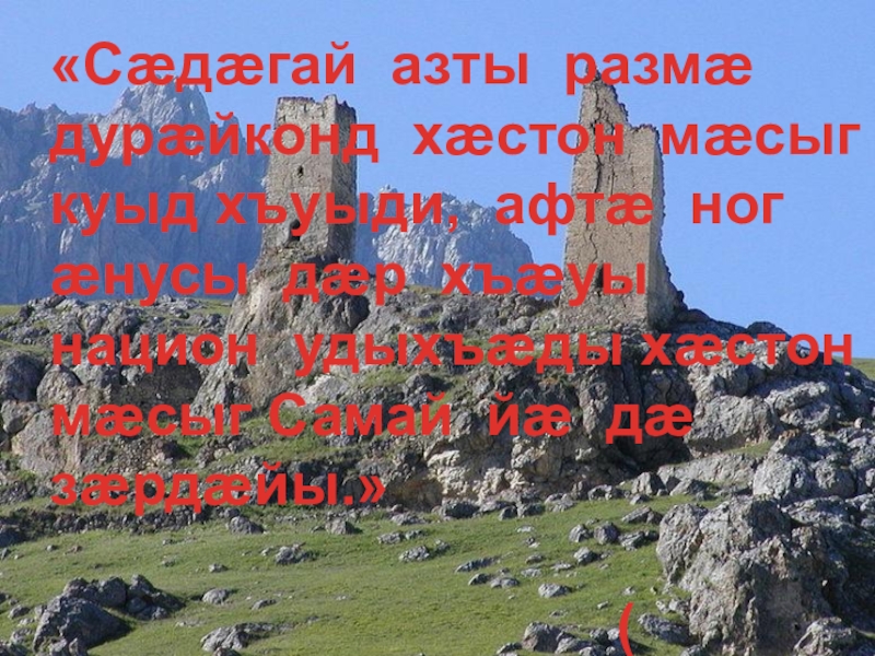 Адæмæн се` взаг куы фесæфа, уæд сæхæдæг дæр нал удзысты.