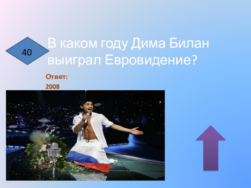 В каком году Дима Билан выиграл Евровидение?Ответ:200840