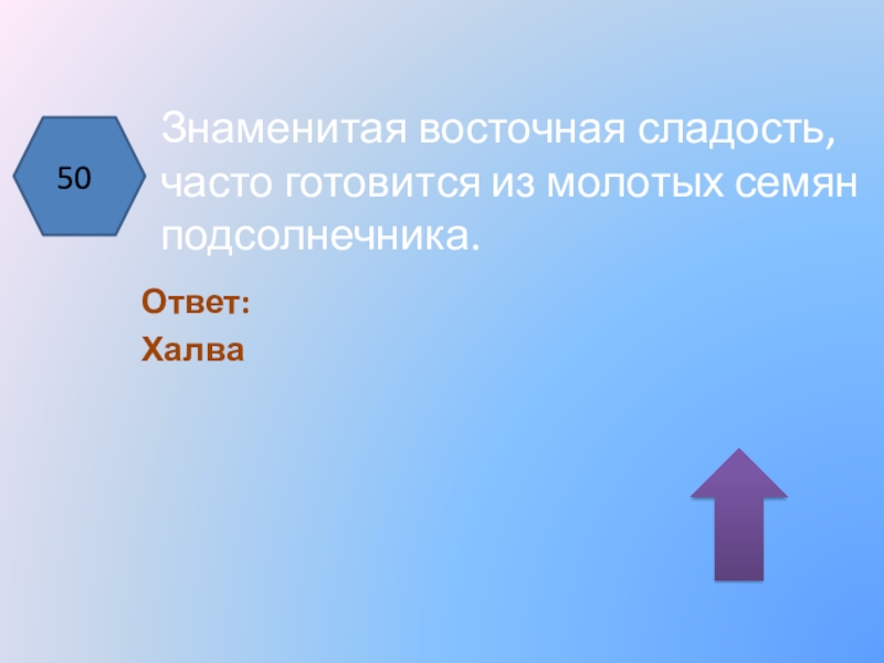 Слайд 22Знаменитая восточная сладость, часто готовится из молотых семян подсолнечника.