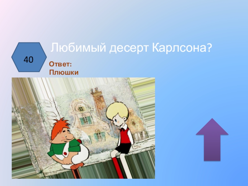Любимый десерт Карлсона?  Ответ:Плюшки  40