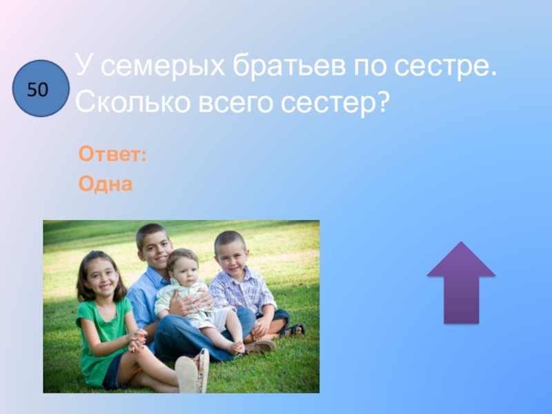 Слайд 6У семерых братьев по сестре. Сколько всего сестер?