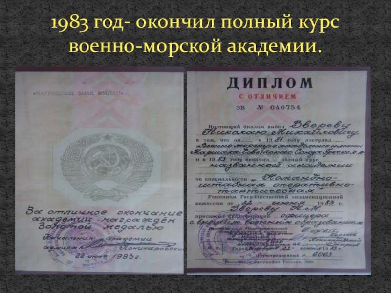 Слайд 221983 год- окончил полный курс военно-морской академии.