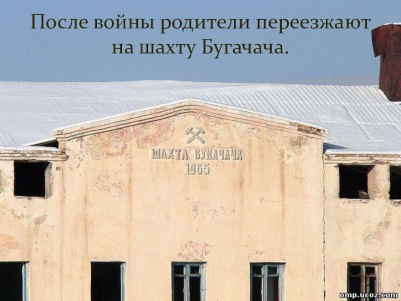 Слайд 6После войны родители переезжают на шахту Бугачача.