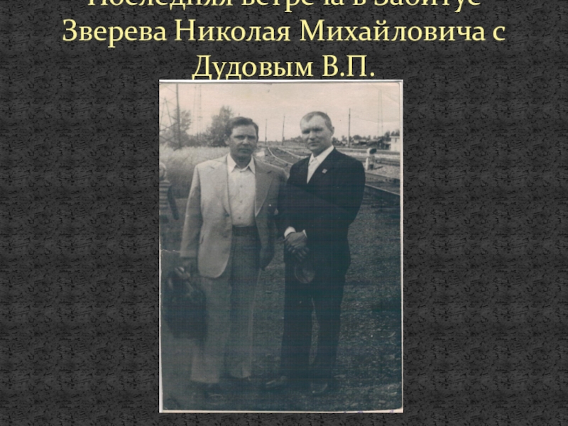 Слайд 32Последняя встреча в Забитуе Зверева Николая Михайловича с Дудовым В.П.
