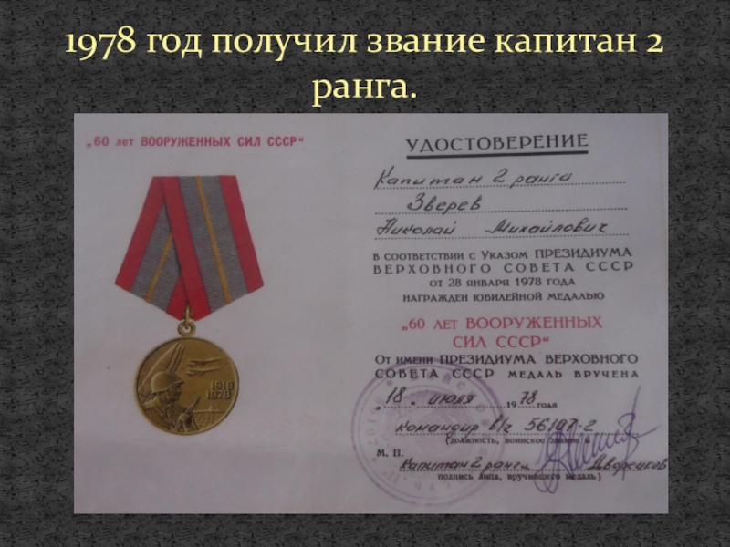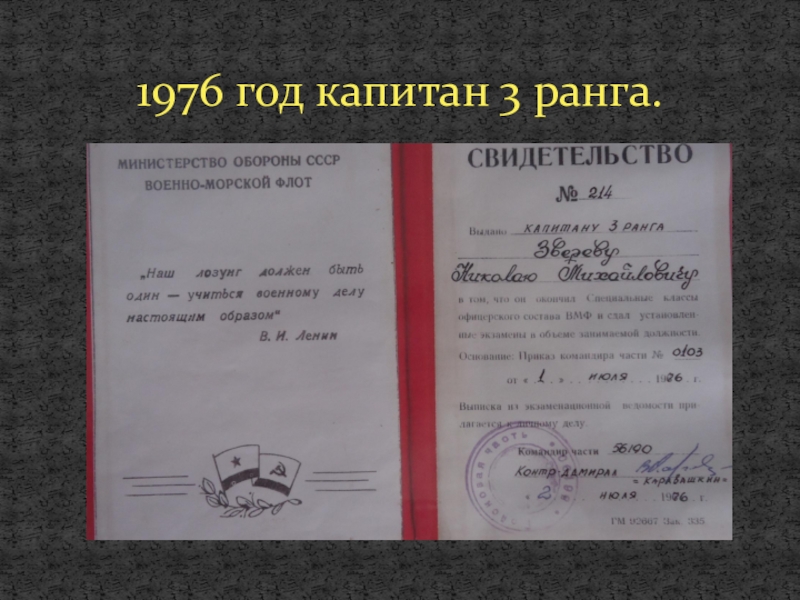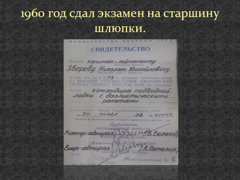 Слайд 121960 год сдал экзамен на старшину шлюпки.