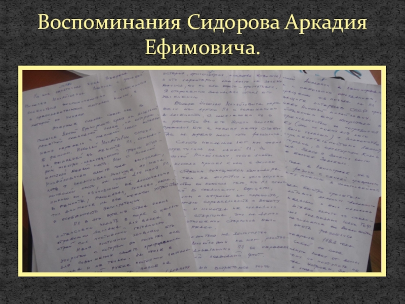 Слайд 26Воспоминания Сидорова Аркадия Ефимовича.