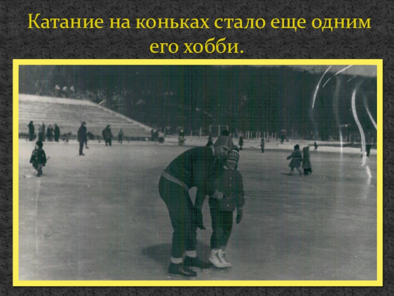 Слайд 14Катание на коньках стало еще одним его хобби.