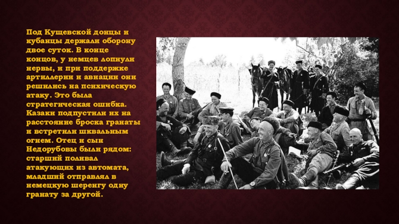 Слайд 15Под Кущевской донцы и кубанцы держали оборону двое суток. В конце