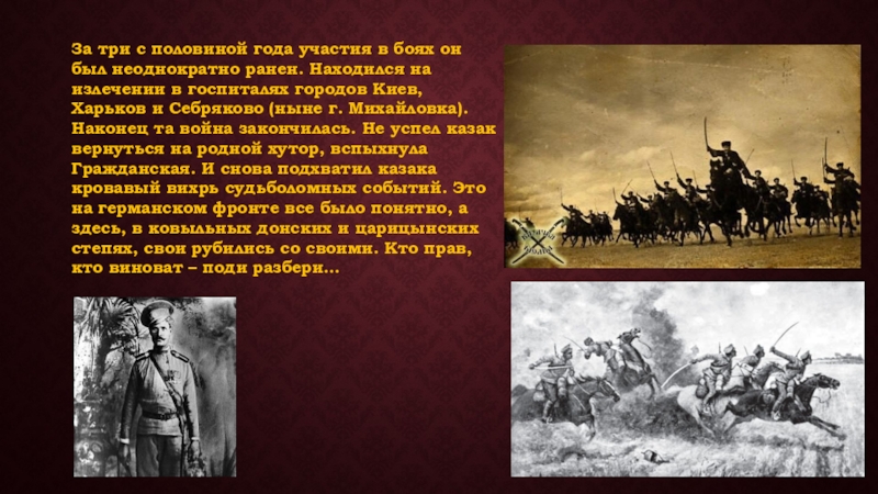 Слайд 8И мотала судьба в этой сумятице мыслей и страстей казака Недорубова,