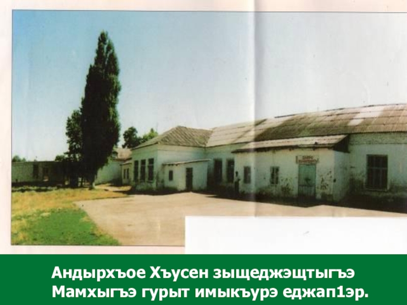 Слайд 4Андырхъое Хъусен зыщеджэщтыгъэ Мамхыгъэ гурыт имыкъурэ еджап1эр.