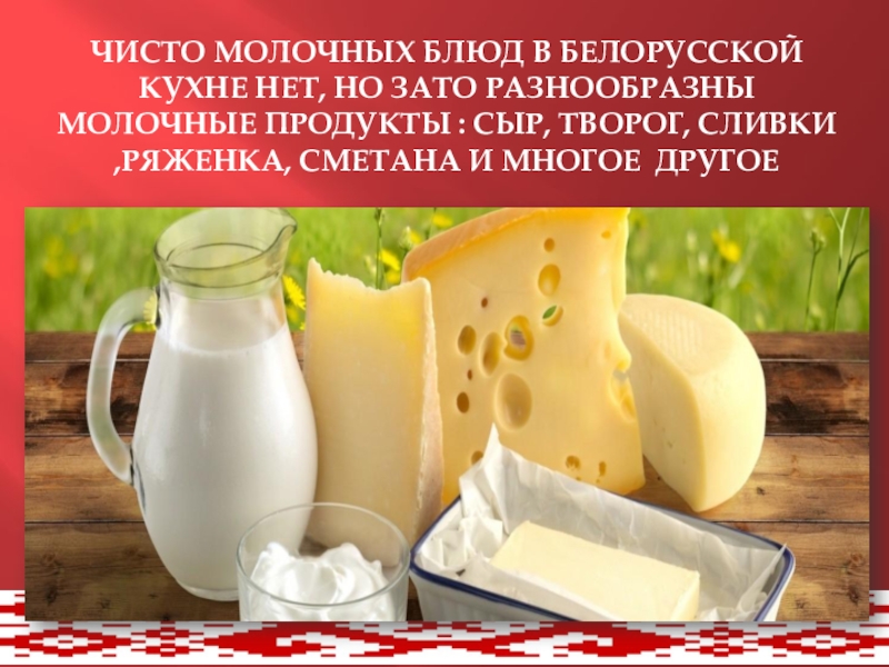 Основное различие в приготовлении блюд у Белорусов является то, что продукты проходят несколько видов обработки, сочетаясь или чередуясь между собой.