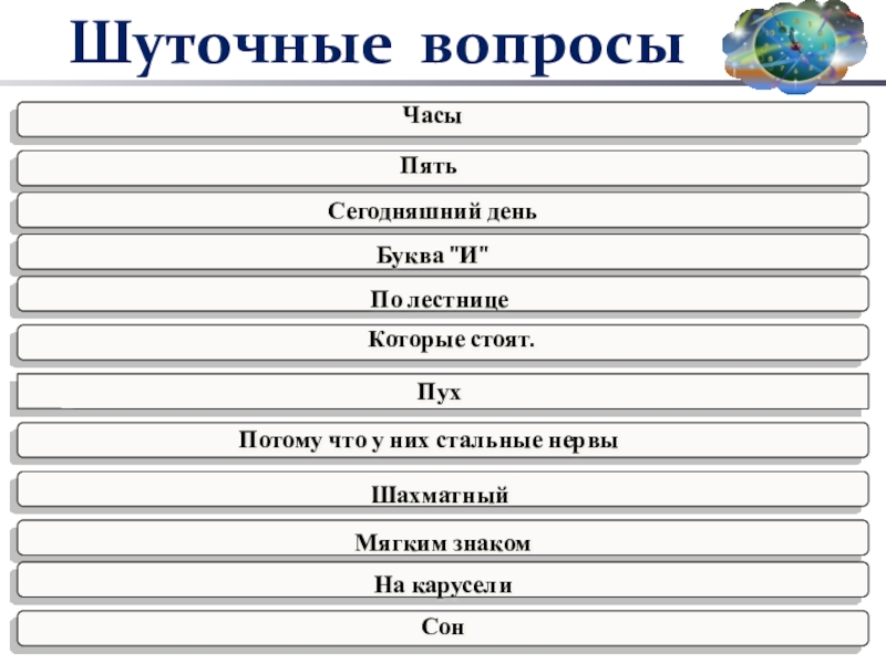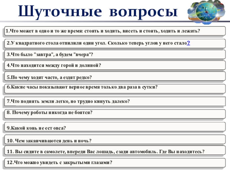 6.Какие часы показывают верное время только два раза в сутки?