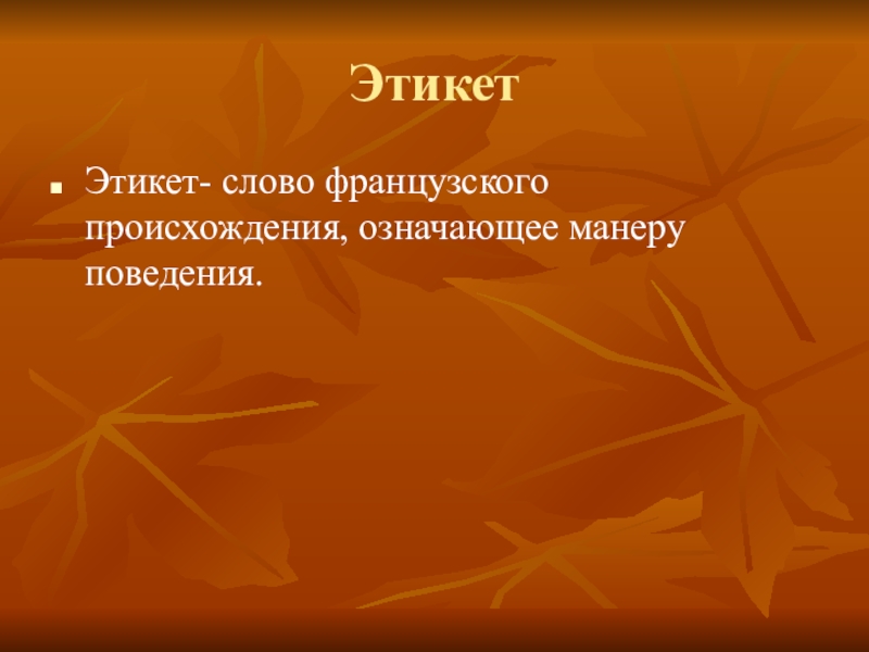 ЭтикетЭтикет- слово французского происхождения, означающее манеру поведения.