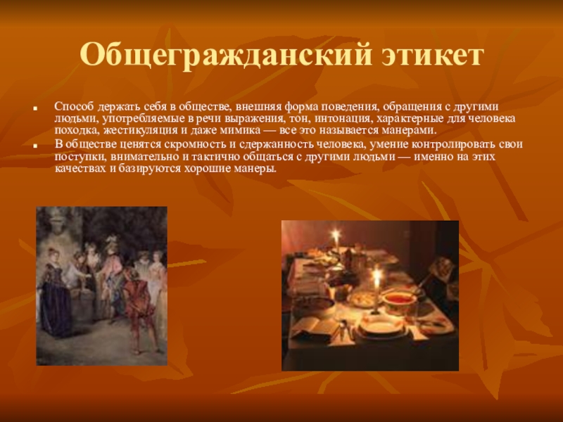 Слайд 6Общегражданский этикет