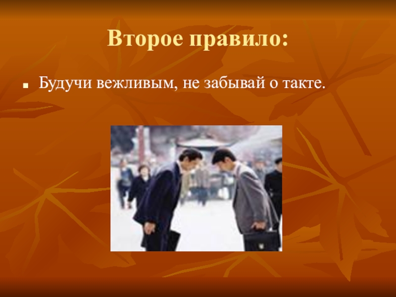 Второе правило:Будучи вежливым, не забывай о такте.