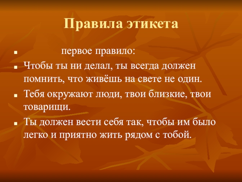 Правила этикета       первое правило:Чтобы ты ни делал, ты всегда должен помнить,