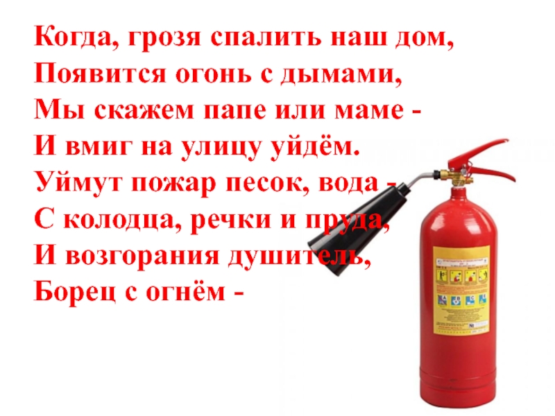 Когда, грозя спалить наш дом, Появится огонь с дымами, Мы скажем папе или маме - И вмиг