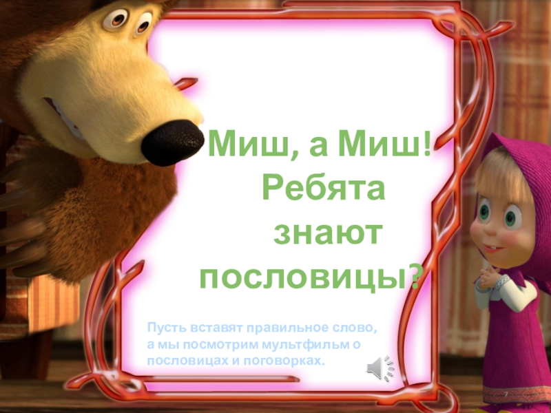 Пусть вставят правильное слово, а мы посмотрим мультфильм о пословицах и поговорках.