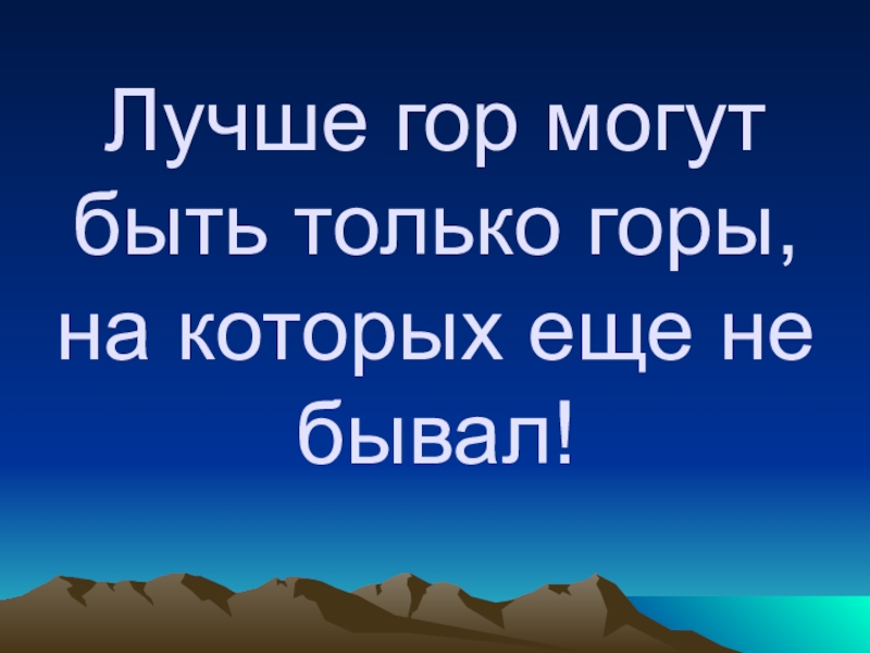 Слайд 4Лучше гор могут быть только горы, на которых еще не бывал!