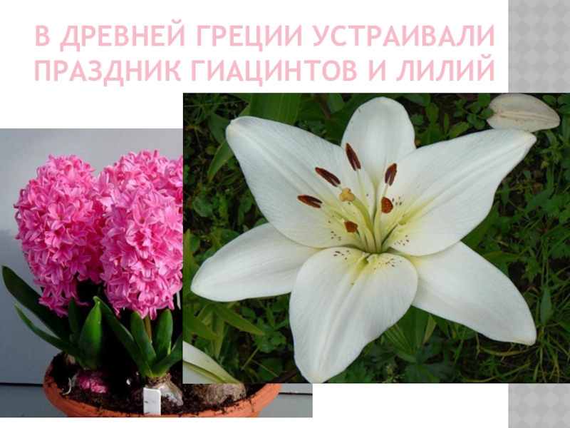 Слайд 2В ДРЕВНЕЙ ГРЕЦИИ УСТРАИВАЛИ ПРАЗДНИК ГИАЦИНТОВ И ЛИЛИЙ