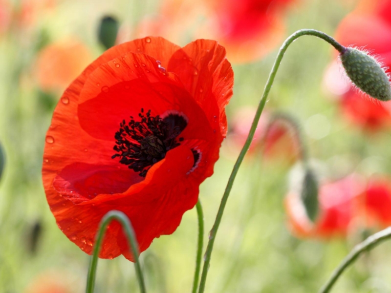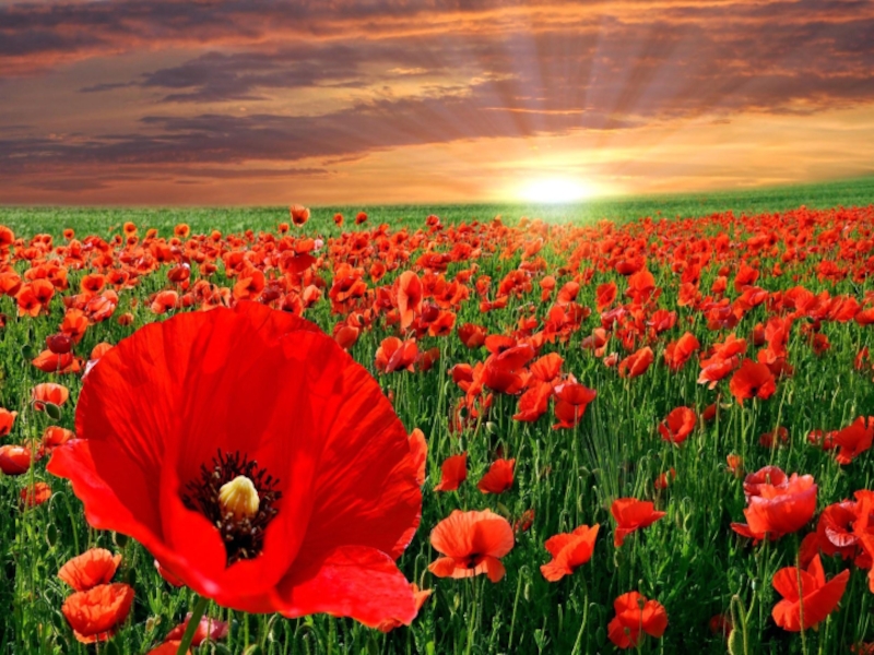 В Англии - незабудок, первоцветов, анютиных глазок, и день маков - как память по погибшим солдатам.
