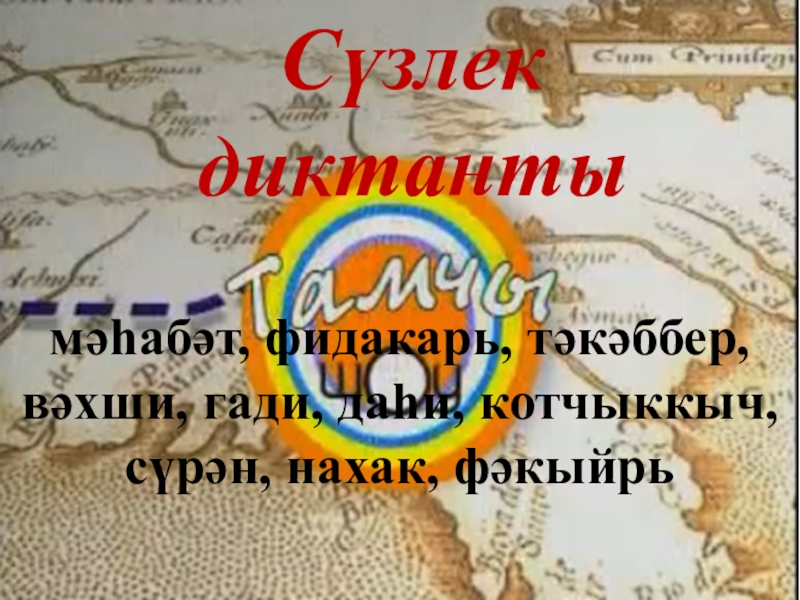 Сүзлек диктантымәһабәт, фидакарь, тәкәббер, вәхши, гади, даһи, котчыккыч, сүрән, нахак, фәкыйрь