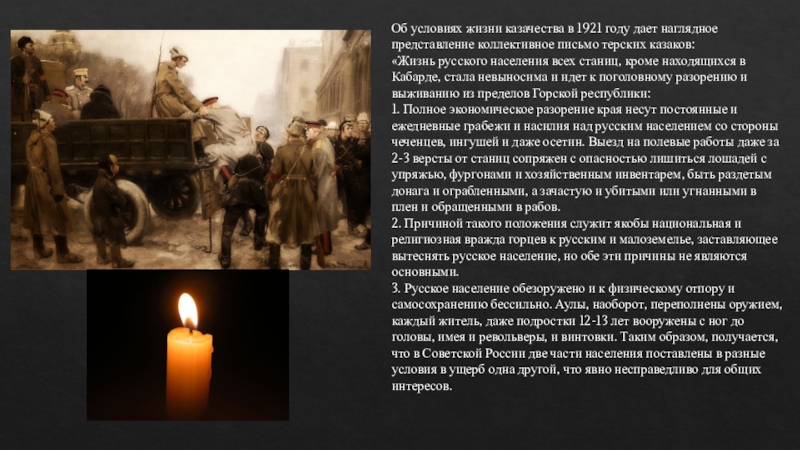 Слайд 24Об условиях жизни казачества в 1921 году дает наглядное представление коллективное