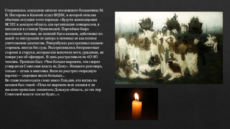 Слайд 11Сохранилась докладная записка московского большевика М. В. Нестерова в Казачий отдел