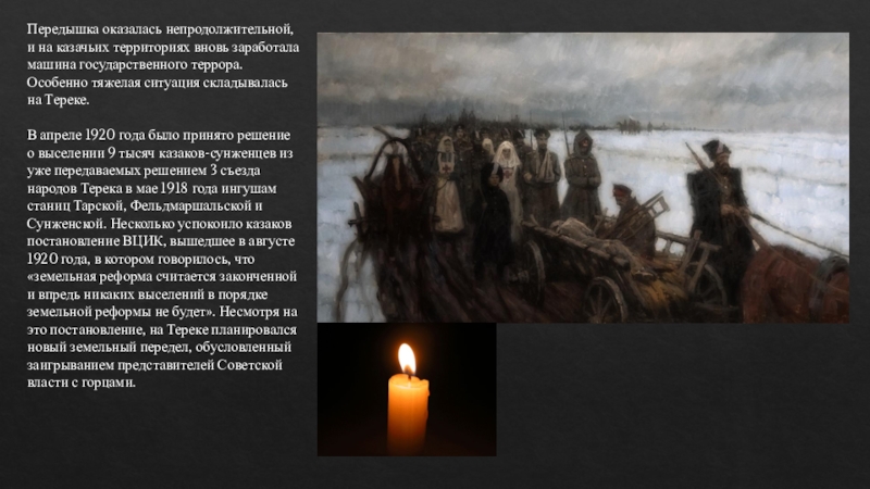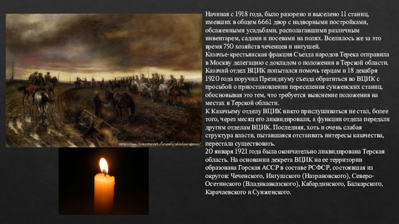 Слайд 26Начиная с 1918 года, было разорено и выселено 11 станиц, имевших