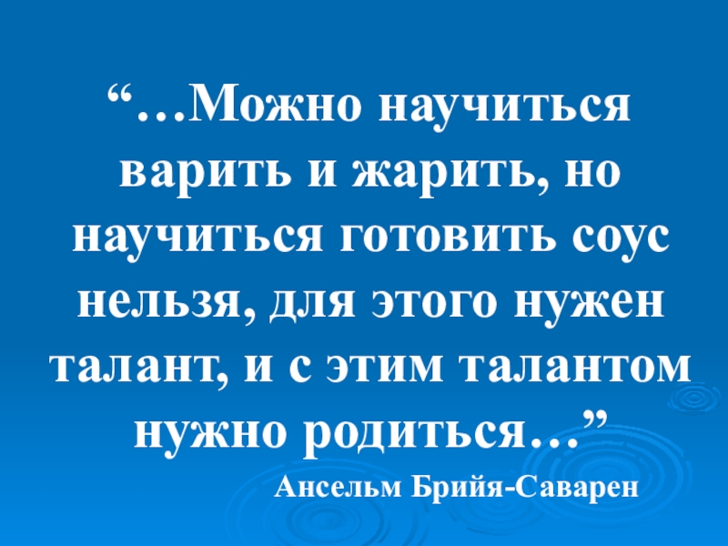 соус нельзя, для этого нужен талант, и с этим талантом нужно родиться…”
