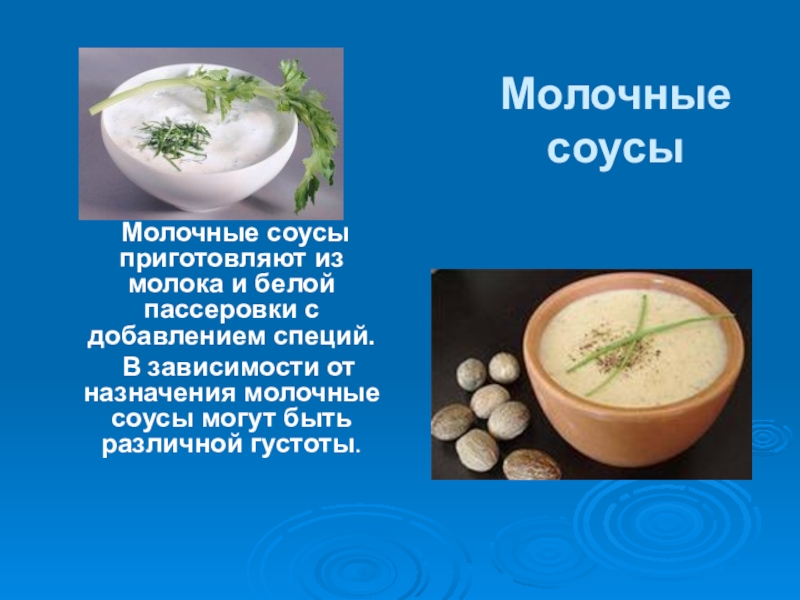 В зависимости от назначения молочные соусы могут быть различной густоты.