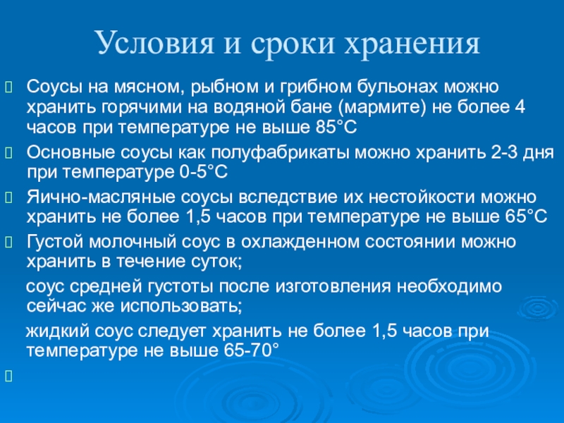 жидкий соус следует хранить не более 1,5 часов при температуре не выше 65-70°