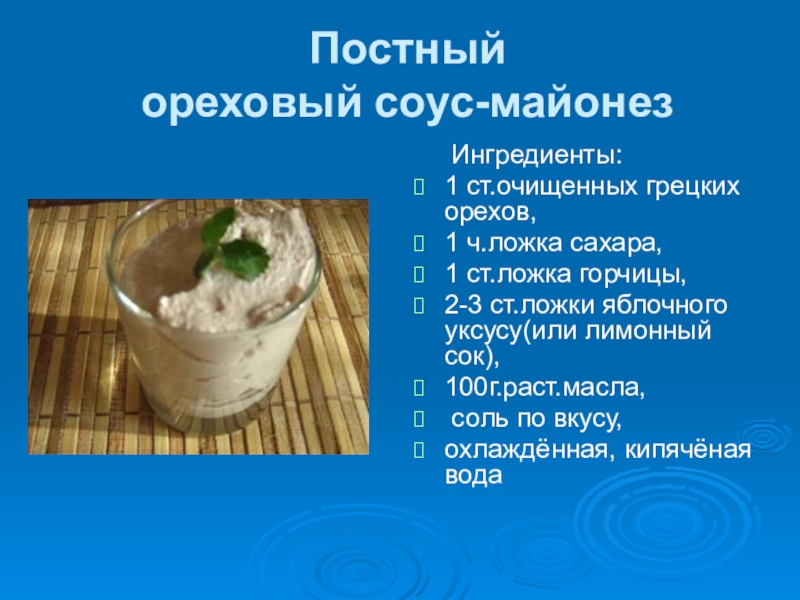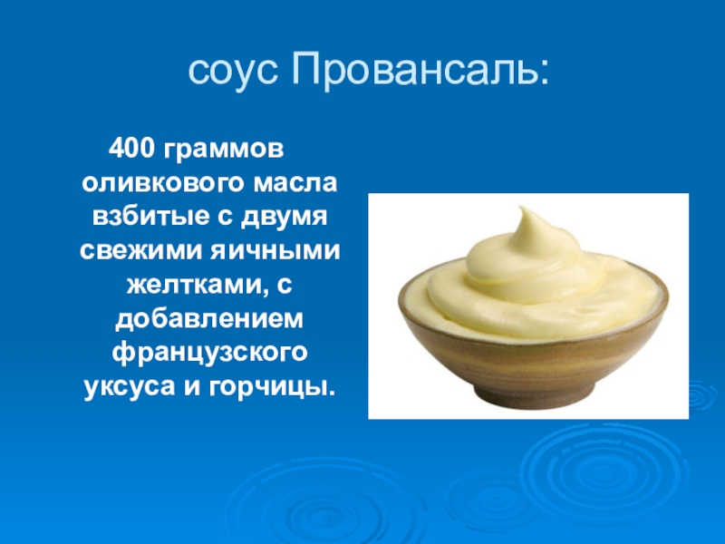 соус приготавливается из оливкового масла, яичного желтка, уксуса или лимонного